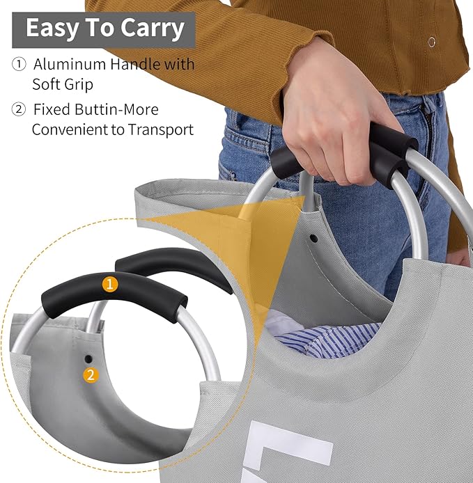 - Sturdy Aluminum Handles – This collapsible laundry basket is a must-have for dorm room essentials, featuring strong aluminum handles with soft foam grip for comfortable carrying to laundry rooms, bedrooms, or bathrooms without hurting your hands.