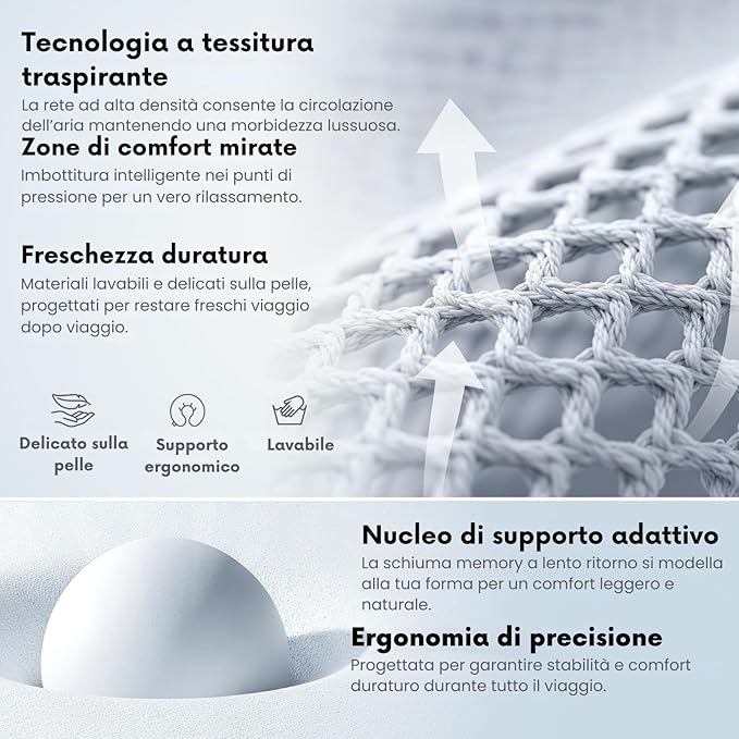 - Special extra accessories - including a high-end mesh carry bag for your neck pillow, memory foam contoured sleeping eye mask and comfortable ear plugs to block out light and sound. This optimal kit makes you ready for international flights in comfort with maximum convenience.