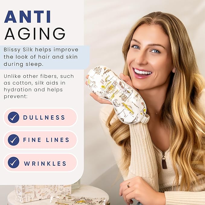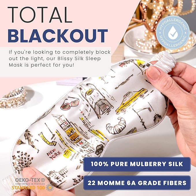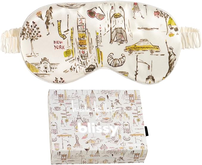 Blissy Silk Sleep Mask - Eye Sleeping Mask for Women & Men for Total Blackout - 100% Pure Mulberry Silk, 22 Momme 6a Fibers - Blindfold Sleep Mask Side Sleeper Eye Cover (NY to Paris)